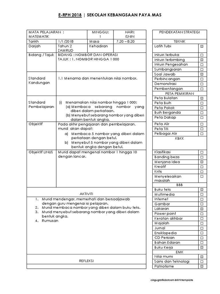 Rph Matematik Tahun 1 2018. RPH Matematik Tahun 2 KSSR merupakan dokumen penting bagi setiap guru. Di sini Pendidik2u ingin kongsikan Rancangan Pengajaran Harian RPH Ma.
