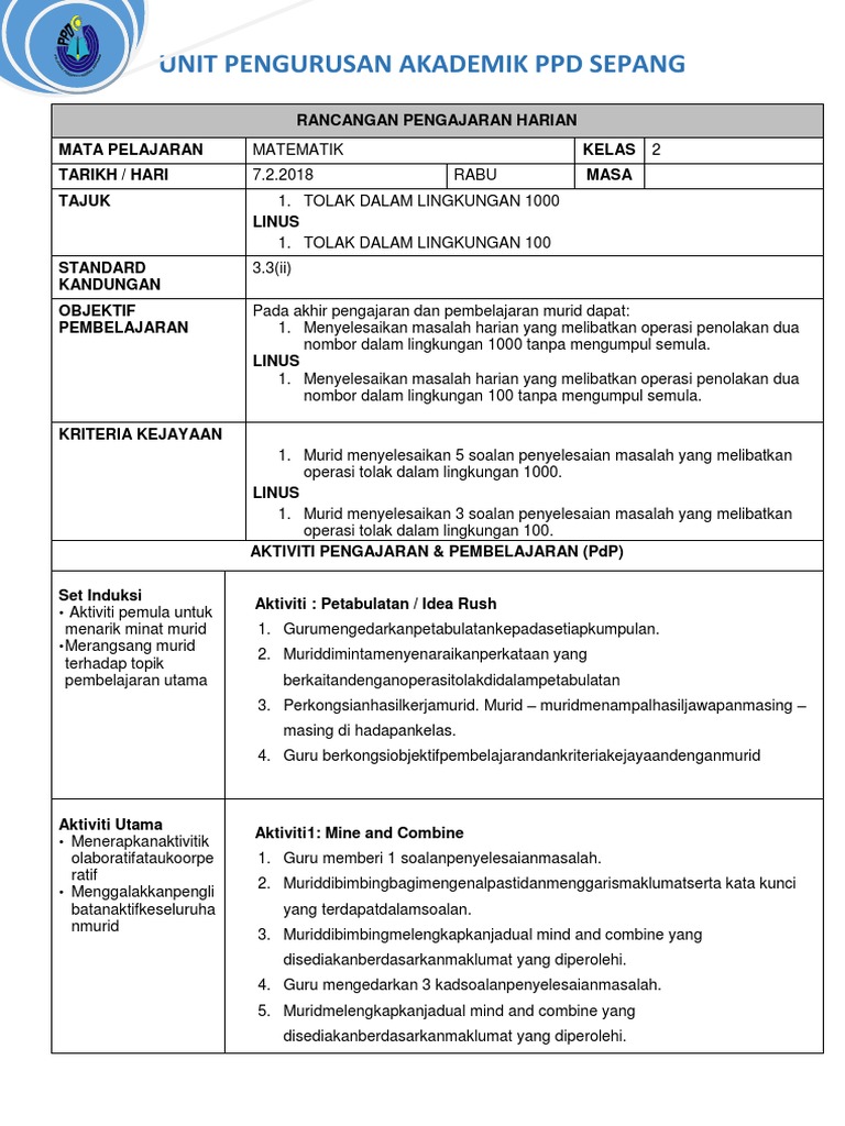Sama-sama bantu membantu antara satu sama lain. RPT Matematik Tahun 2 2021. RPH matematik Tingkatan 2 Bab 1 Nombor Berarah Rancangan Pengajaran Harian 2016 Hari Khamis Tarikh 25 2 2016 Tingkatan Kelas 2 D Kehadiran pelajar Waktu Tempoh Minit 35 minit Bidang Pembelajaran Nombor Perkaitan Bentuk.