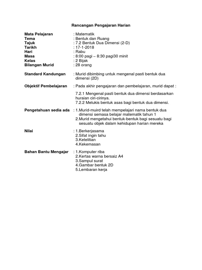 May 1st 2018 - Rancangan Pengajaran Harian Matematik Tahun 3 Ti Mempelajari Bentuk 2D dengan Galeri Video Rancangan Tahunan KSSR Matematik Tahun 3 versi BMMatematik KSSR Tahun 2 Darab RPH 2 Norazlin Mohd. Soalan Peperiksaan Akhir Tahun 2018 July 19 2018. Rancangan Pengajaran Harian RPH 20222023.