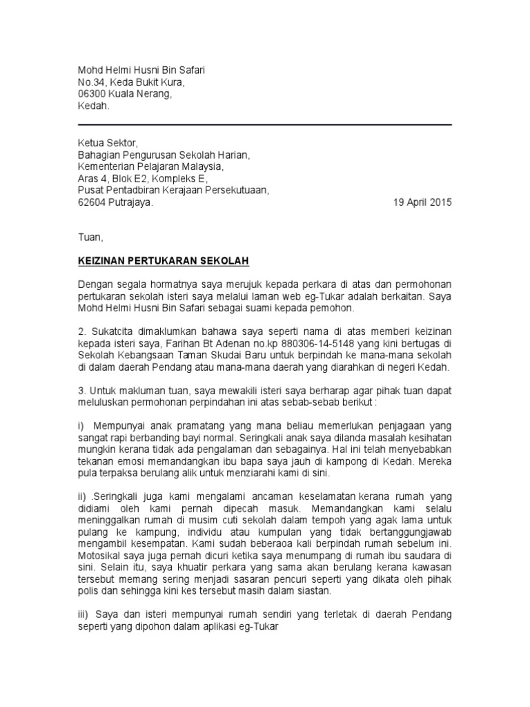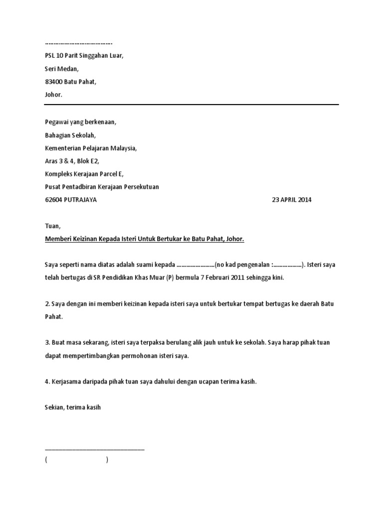Contoh Surat Izin Suami Untuk Memohon Pertukaran Sekolah Collingjb